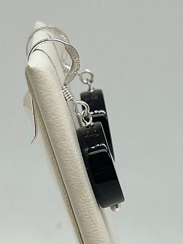 The richness of the black Agate pops off its sterling silver French hook backs! Wow! The round black agate is 15 mm long and 4 mm thick.