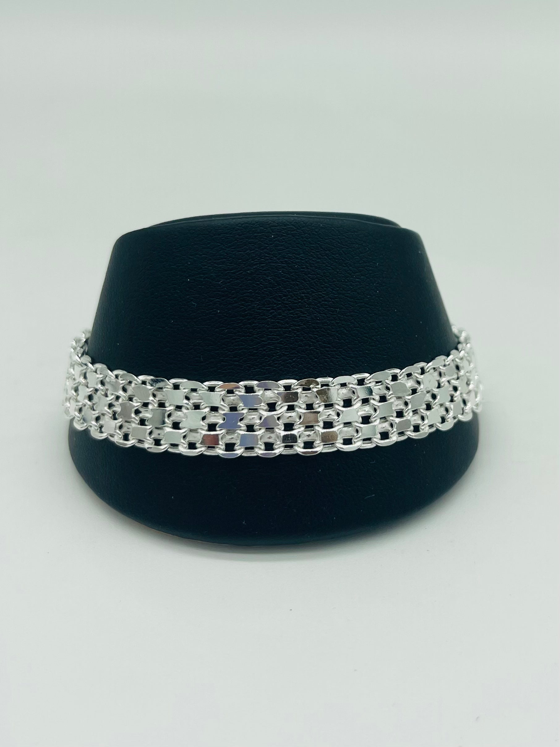 This dazzling Hamilton style bracelet is in sterling silver and 9.7mm wide! She gives the illusion of high end without the price! Length is 7.5 inches.
