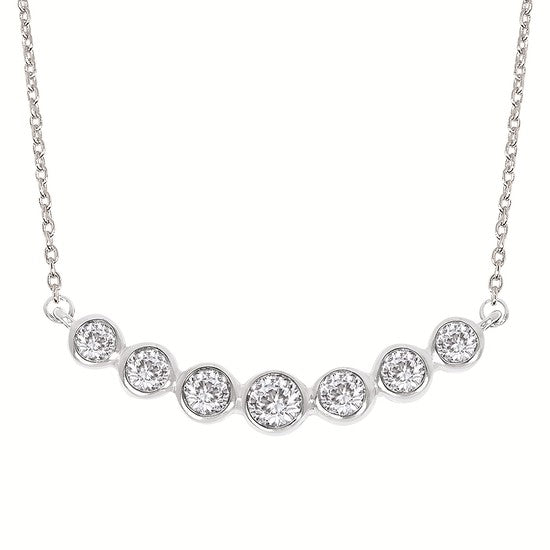 7 Diamond Bezel Bar Necklace In 14K Gold With 20" Chain! Available in 1/2ct, 1.00ct, and 1.50ctw.