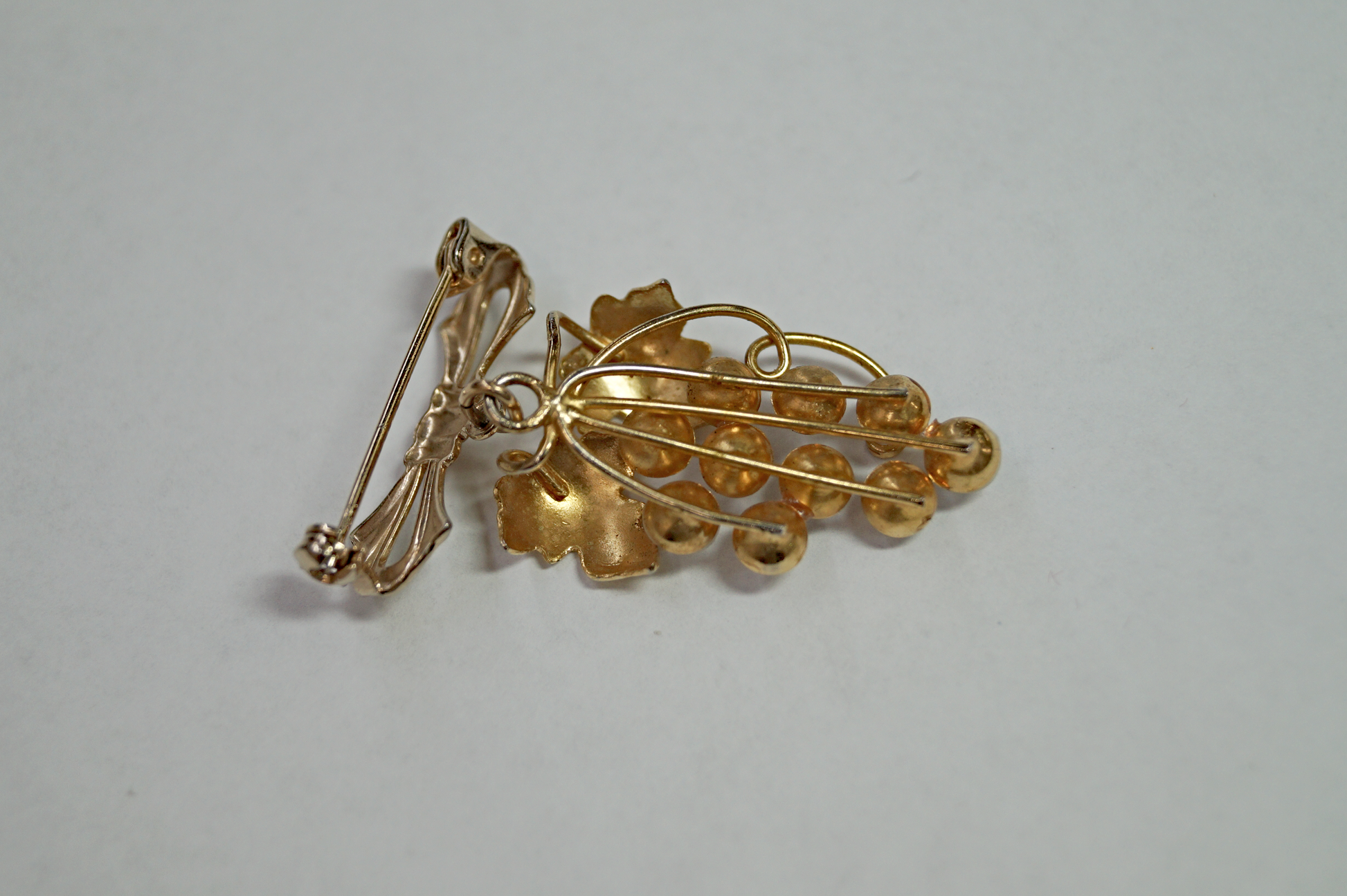 14k Gold Vintage Opal Grape Brooch