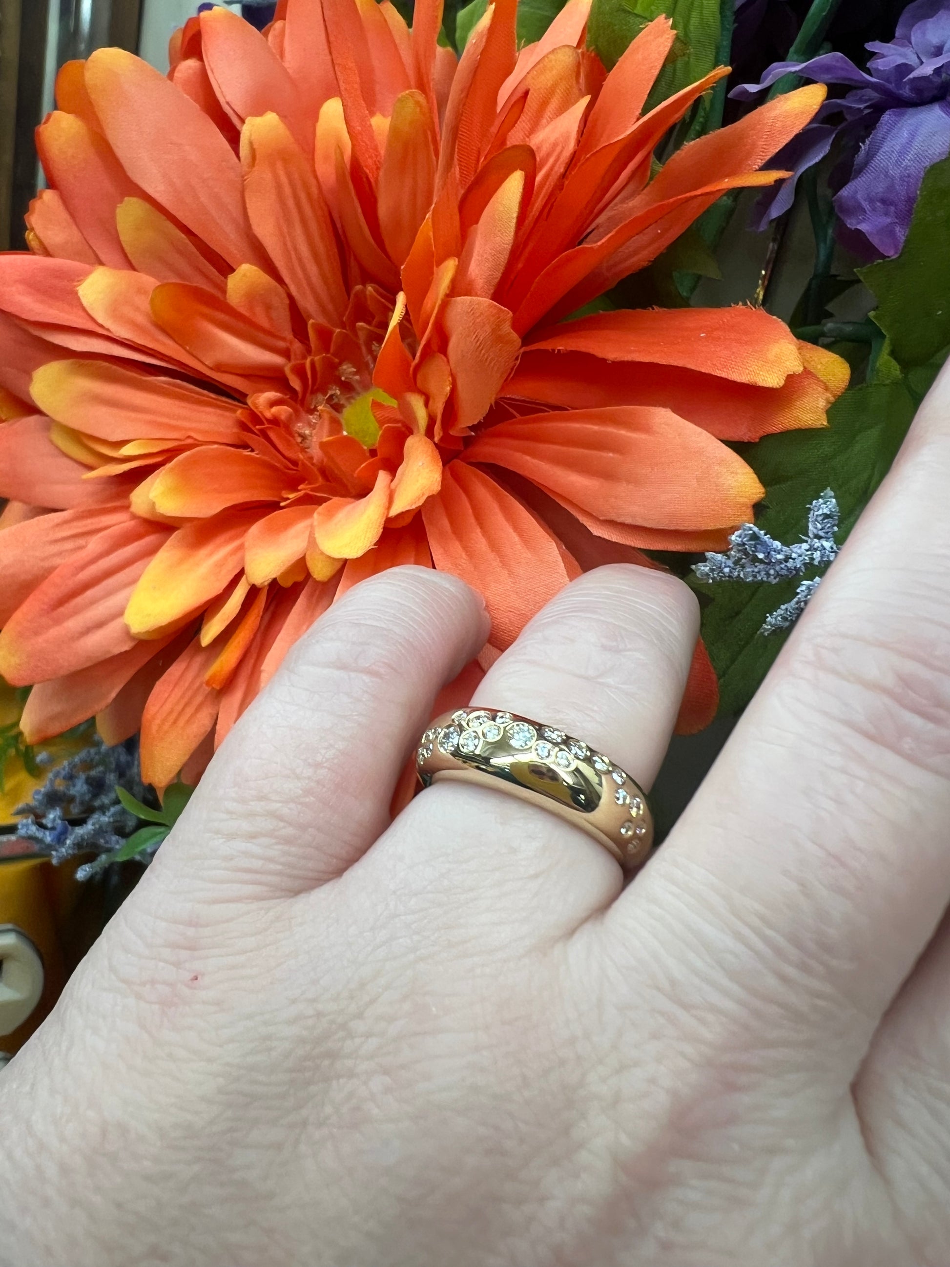 This gorgeous .60ct diamond total weight fashion ring is made of 14k yellow gold!! We are loving the scattered design of the 29 multi diameter stones and how they are simply flush set! Looks like bubbles! 🫧🫧✨