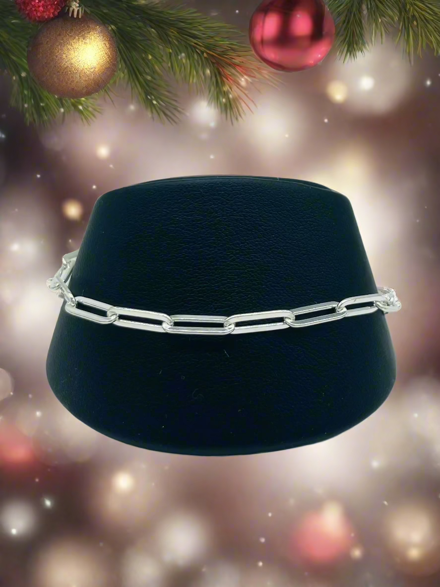 Lovely paperclip bracelet in sterling silver with links that measure 11.7mm! Total size of bracelet is 8 inches.