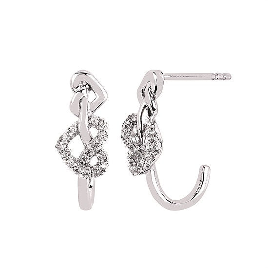 With its post dangle style, these earrings are super easy to wear! The hearts almost pretzel shape in diamonds is unbelievably charming! These earrings are in sterling silver with 1/6 ctw in diamonds! Dazzle her this Valentine’s Day or Mother’s Day with these! There is a matching ring that accompanies the earrings. Find it online here too!
