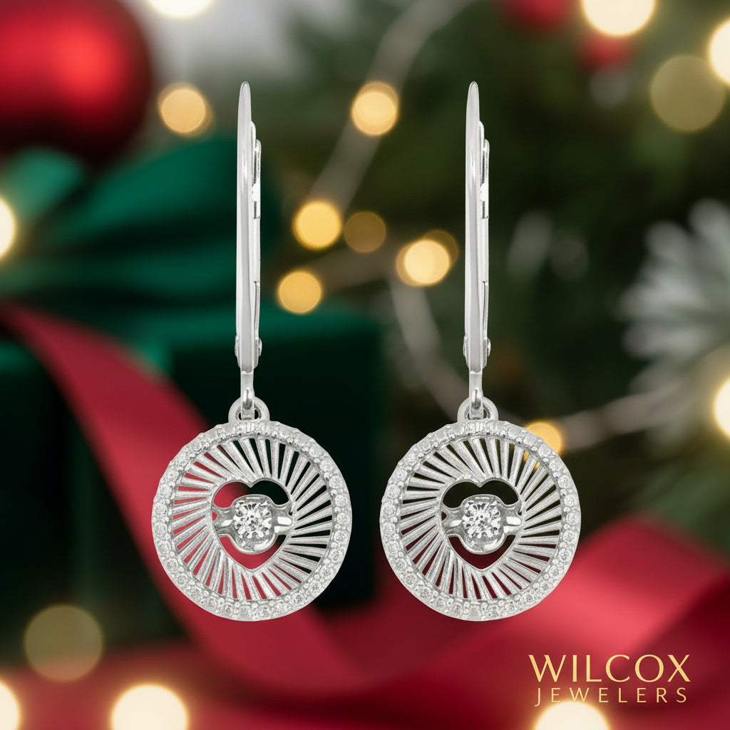 Shimmering Diamonds® Disc Heart Drop Earrings With .015 Ctw. Diamonds In Sterling Silver!