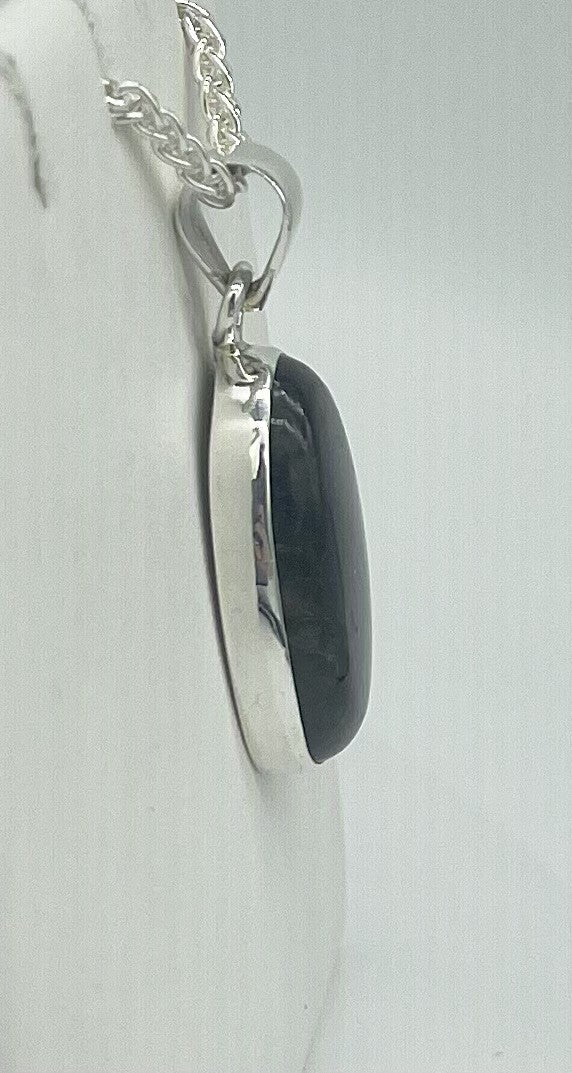 When she hits the light, it's like seeing the Galaxy! This Labradorite is in sterling silver and measures 26.5mm x 15.75mm.