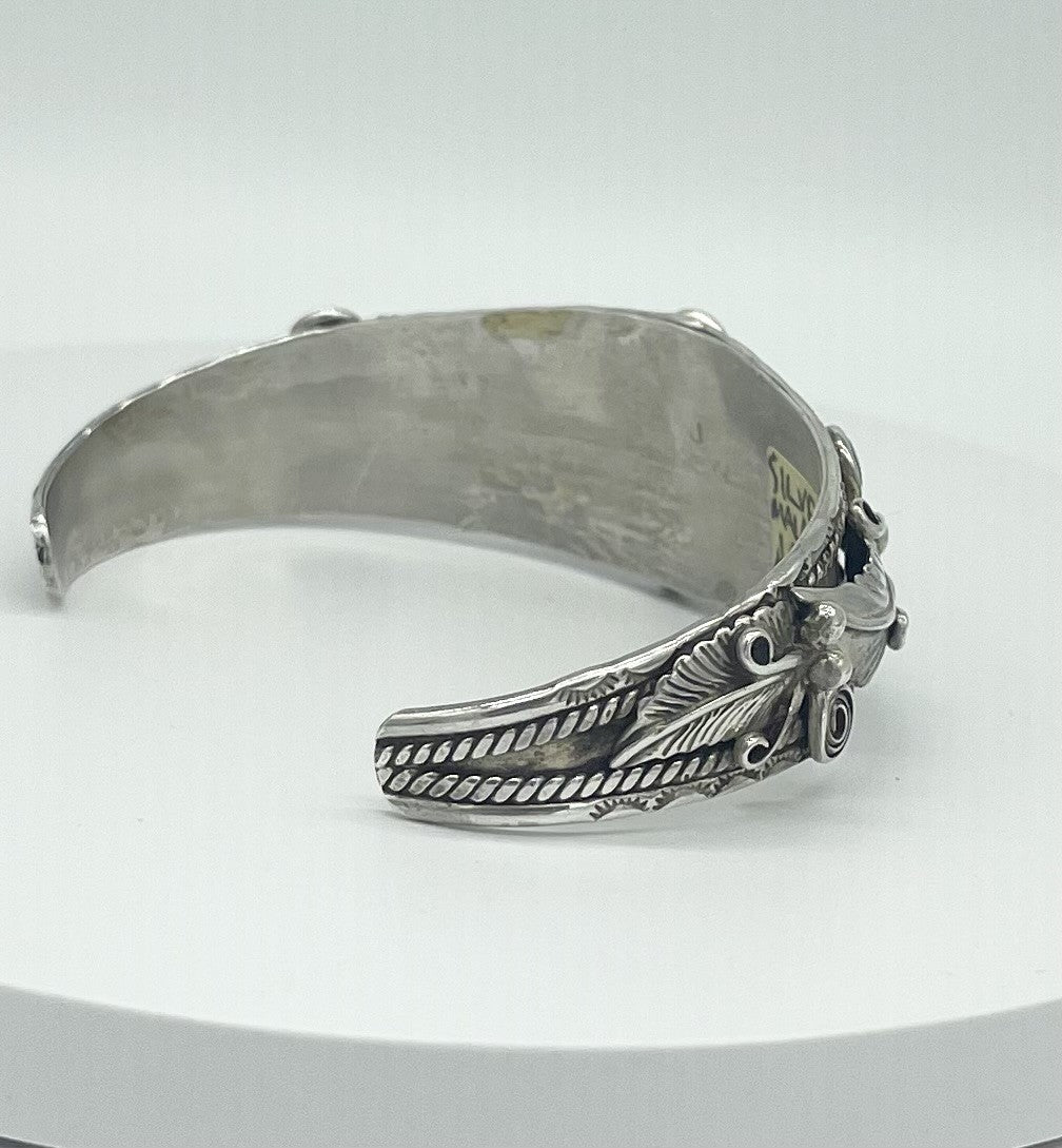 The silver workings on this cuff is immaculate, and the touch of Malachite ties everything together!