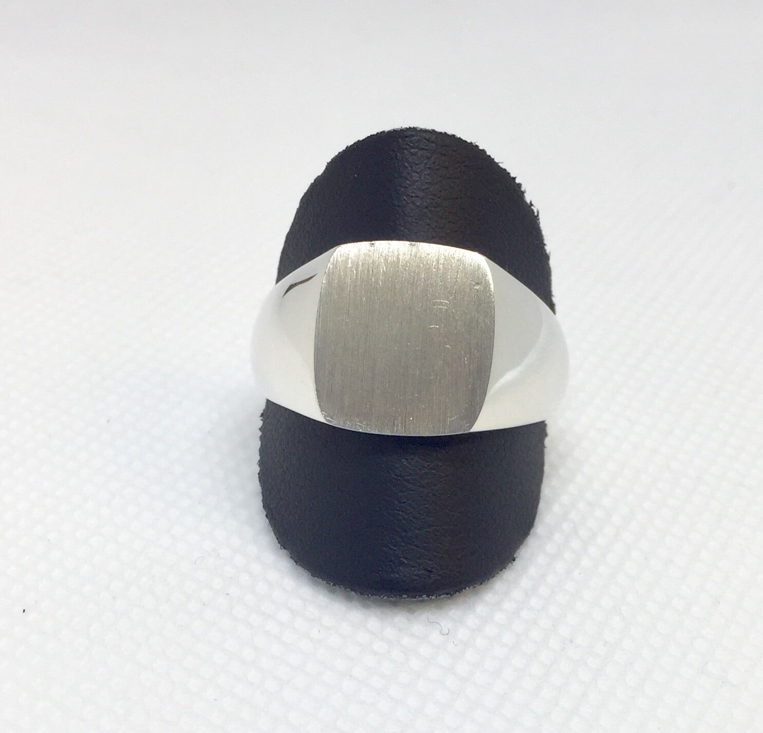 A square has four sides! With in these four edges is a brushed area that can be engraved with one, two, or three initials! Engraving available for additional charge. The rest of the ring is bright high polish for contrast and its made of sterling silver!
