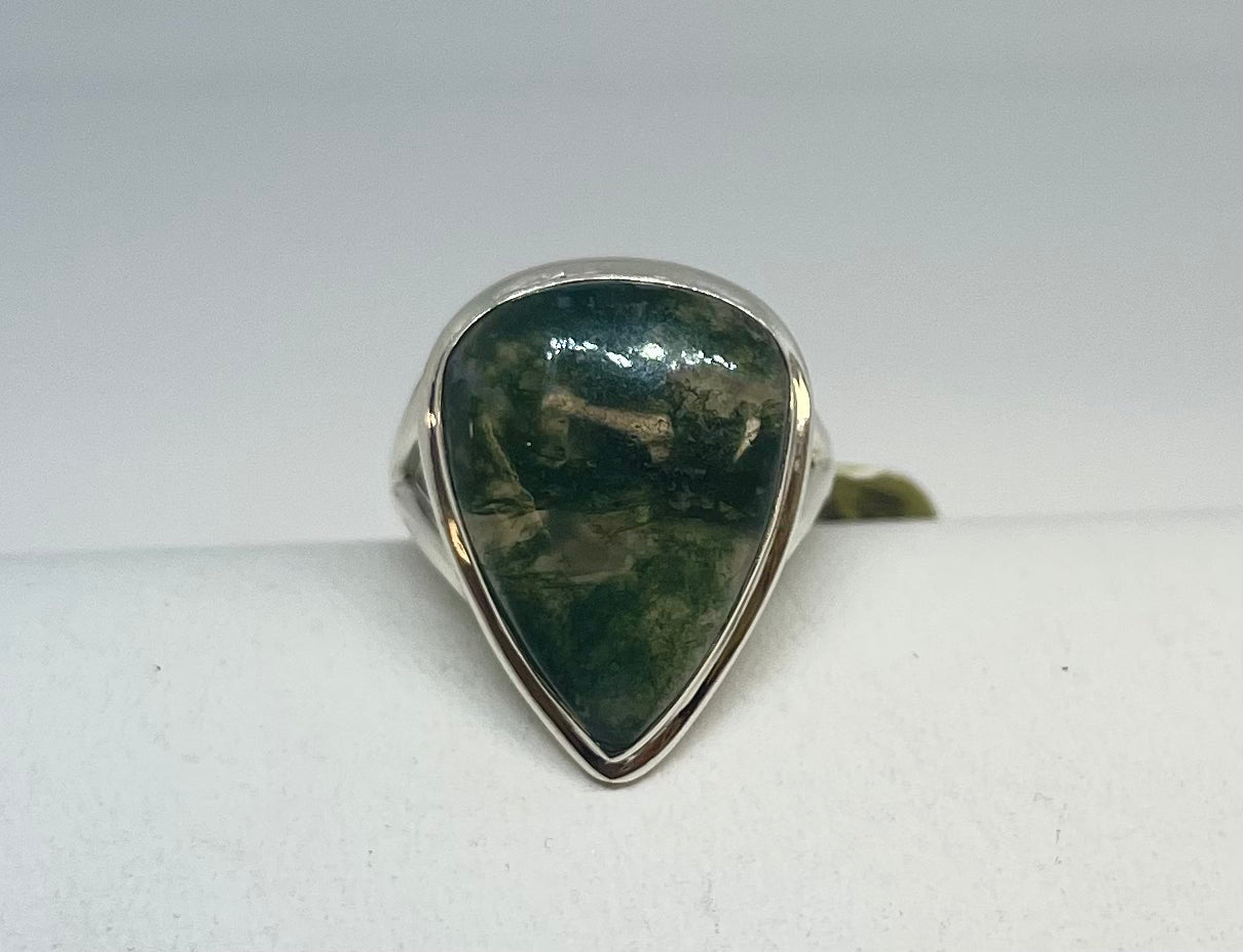 This stone works out soothe and calm and help you feel connected to the world all around you! This beautiful stone is a lovely earthly stone that encourages tranquility and emotional balance. Finger size is a 7. The ring mounting is done in silver and the stone size is 20mm x 15mm.