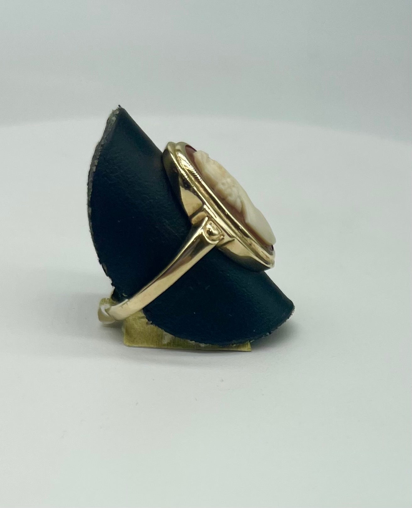 Love love love the rich color of the cameo background, as well as, the 10k yellow mounting style! Finger size is 6 1/4.