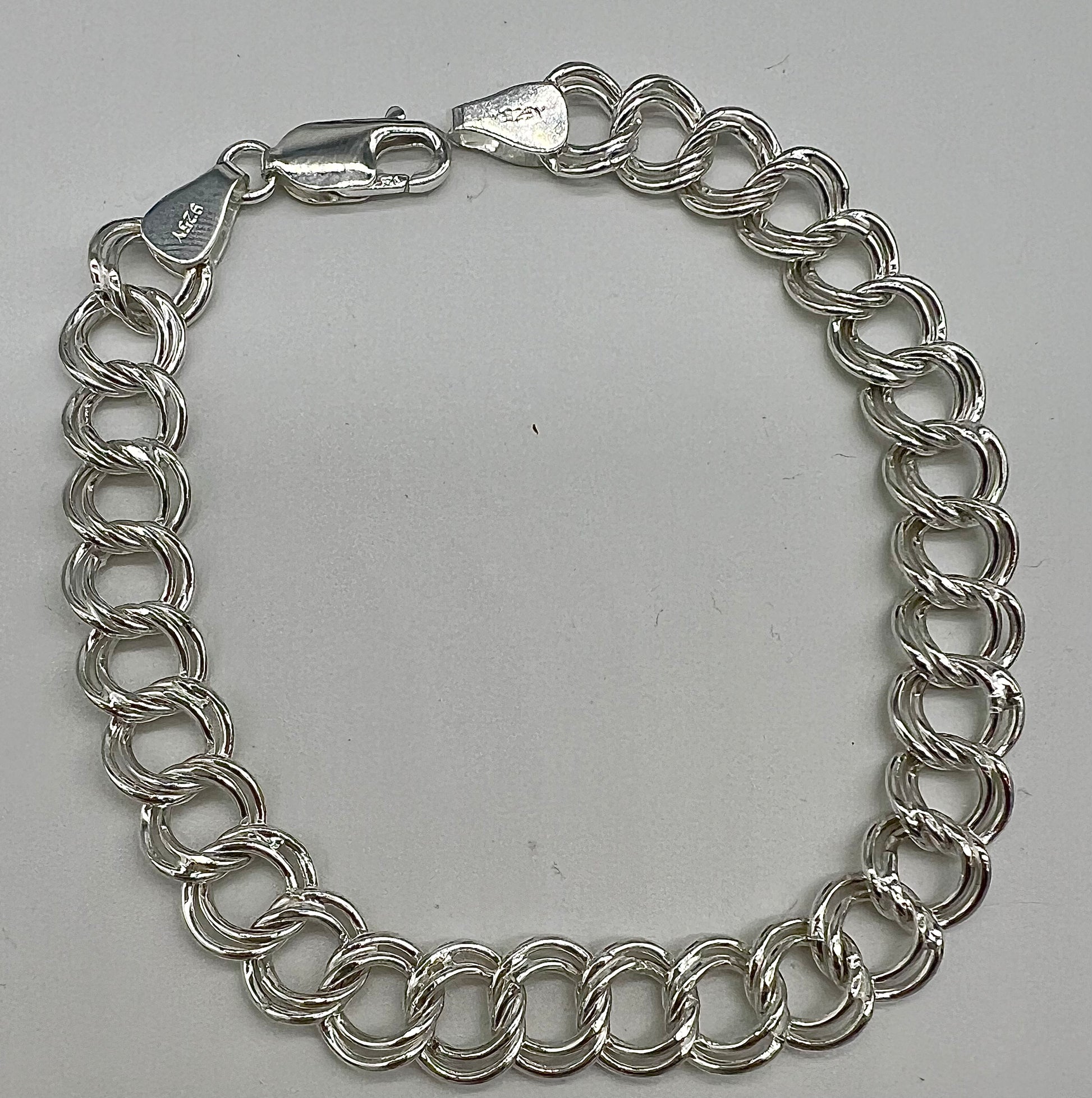 This sterling silver bracelet has double links! It can be used as is, like a fashion bracelet, or as a charm bracelet! It’s 8.6mm wide and is 7.5” long!