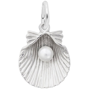 The beautiful treasures of the sea are often found buried beneath the sand. The Clamshell With Pearl Charm has the luster of a cultured pearl without the wait. Available in silver and gold.