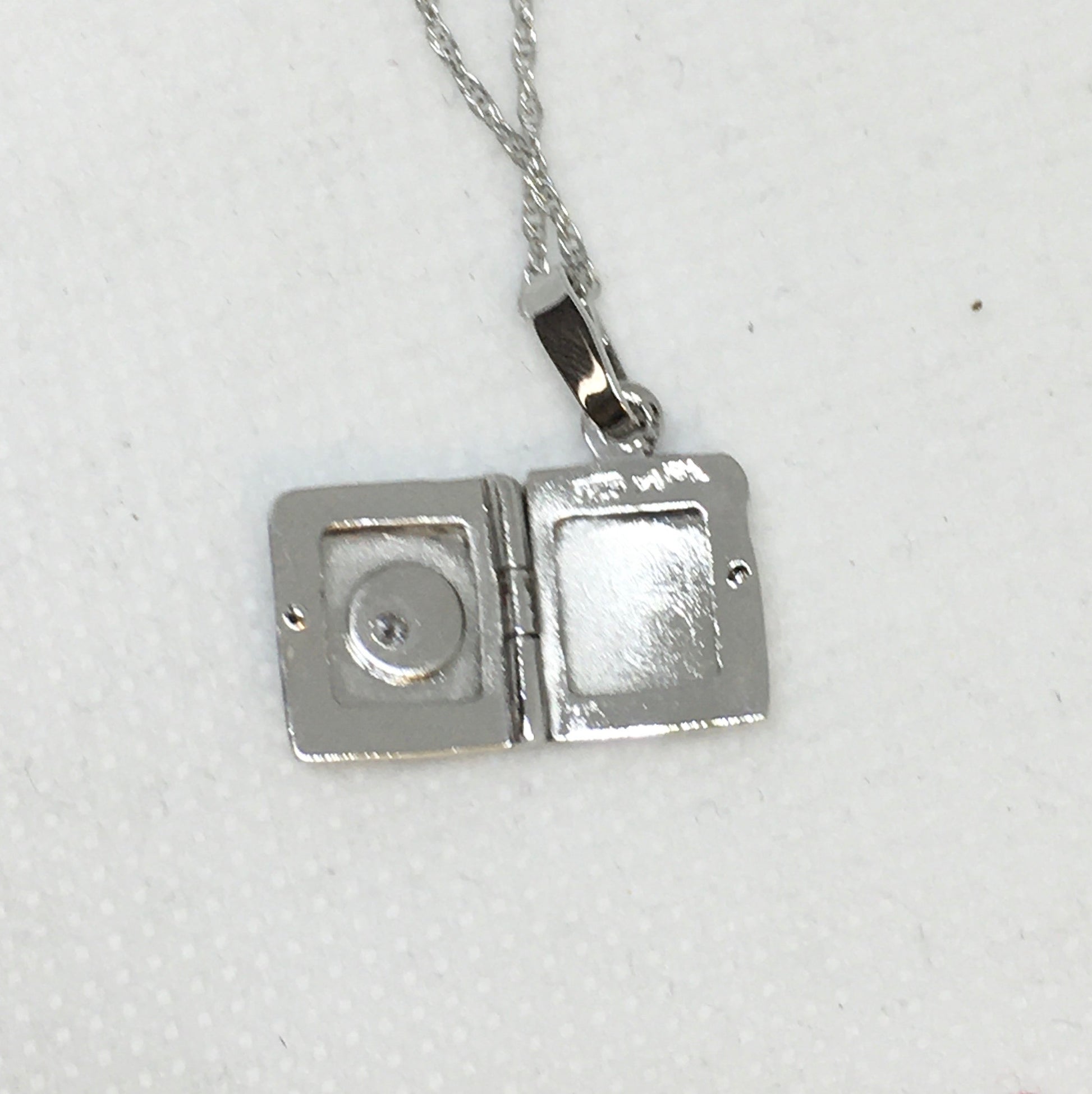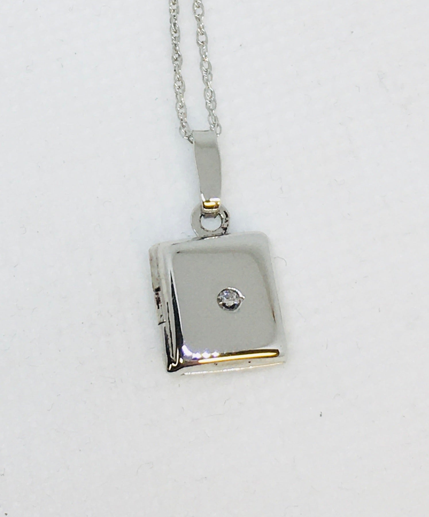 The accent diamond adds a beautiful touch to this square locket! This square locket is made of sterling silver and has a chain of 18 inches. It can open and have picture placed inside of whomever you’d like!
