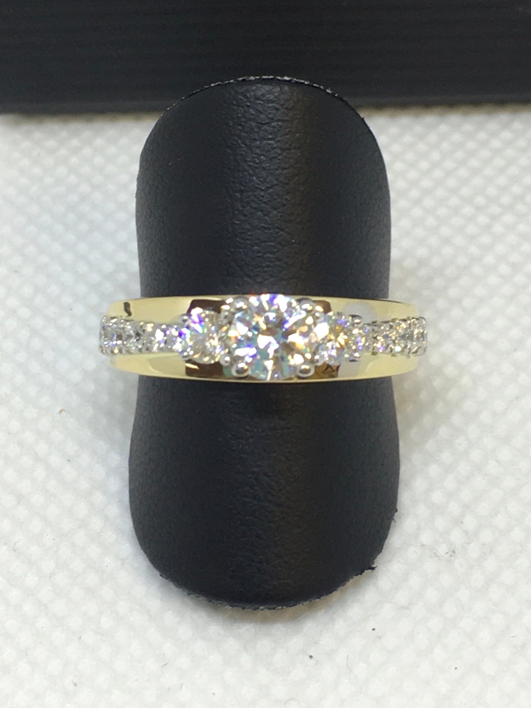 Engagement Ring Is in 14K Yellow Gold With a Center CZ of .50 ct. Its Diamond total weight is Ā .48ct.
