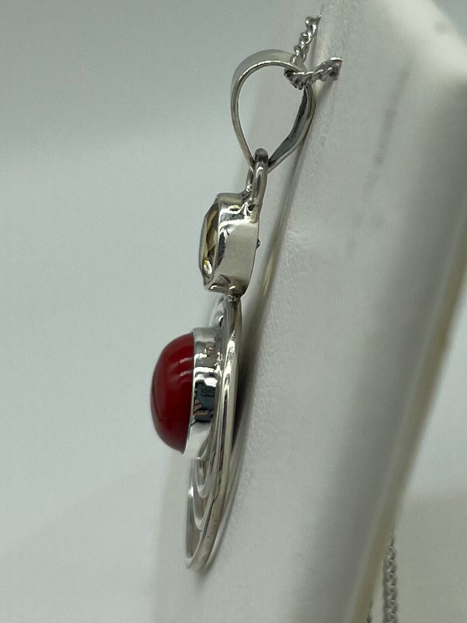 Coral & Lemon Quartz Pendant